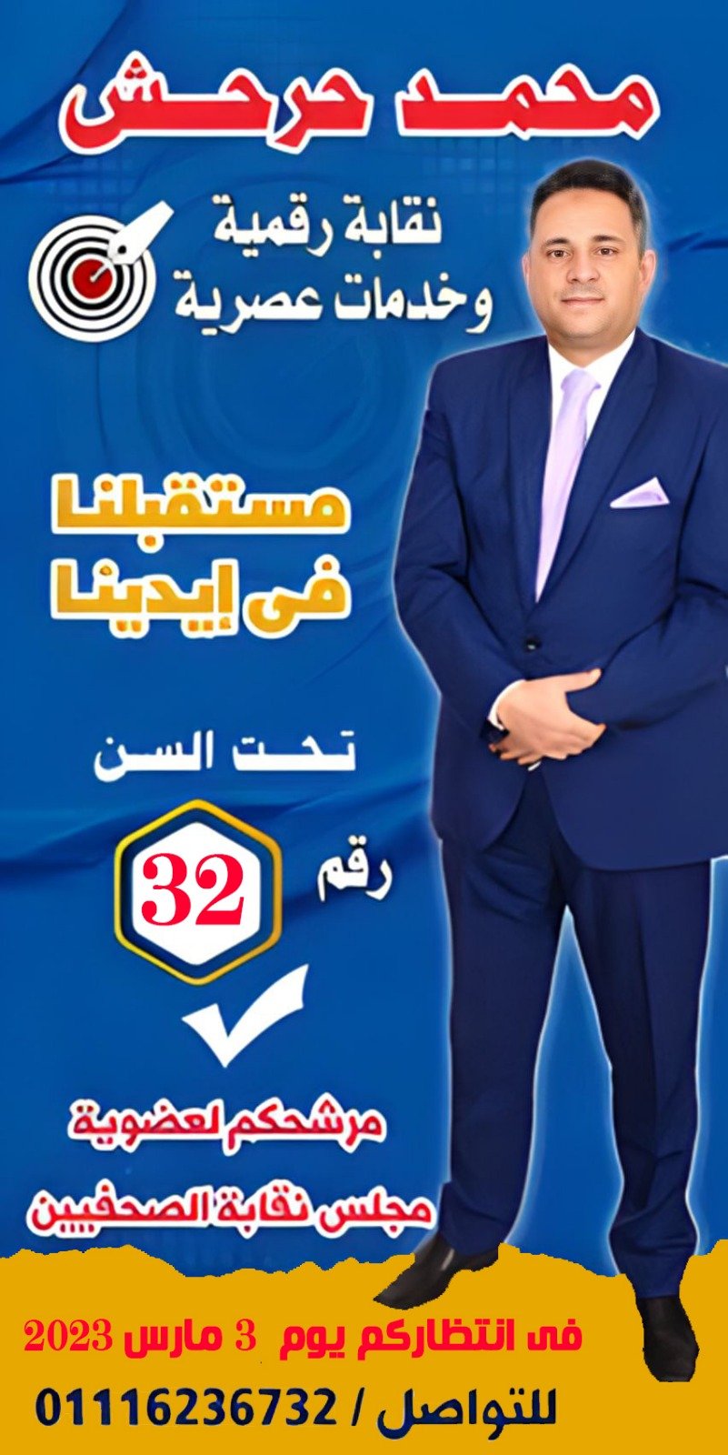 ان شاء الله اخوض انتخابات التجديد النصفي لمجلس نقابة الصحفيين تحت شعار (نقابة رقمية وخدمات عصرية) فقد حان وقت التغيير لمواكبة عصر (التحول الرقمي) وعلينا التأكيد على (هويتنا الرقمية) حفاظا على مستقبلنا..