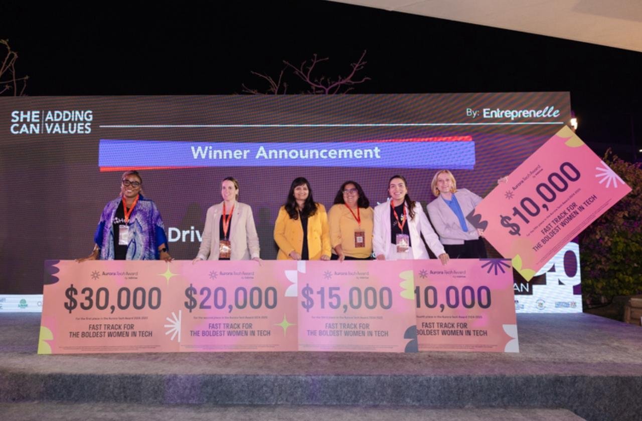 وأُطلقت جائزة “Aurora Tech” عام 2020 بمبادرة من إندرايف لدعم الشركات الناشئة التي تقودها نساء ويجمع نشاطها بين الابتكار والأثر الإيجابي، لتتطور خلال السنوات الماضية إلى منصة مؤثرة تُعلي من شأن الأصوات النسائية الأقل تمثيلًا في عالم التكنولوجيا. وقد شهدت نسخة 2025 إقبالًا غير مسبوق، حيث تلقت 2,018 طلبًا من 116 دولة، ما يعد ضعف عدد الطلبات المسجلة في العام السابق، وجاءت المتأهلات للنهائيات من مناطق متنوعة شملت الشرق الأوسط وشمال إفريقيا، وأمريكا اللاتينية، وآسيا الوسطى، ومنطقة آسيا والمحيط الهادئ، بمشروعات تغطي مجالات متعددة منها التكنولوجيا الصحية، والذكاء الاصطناعي، والتكنولوجيا المالية، والتعليم التقني، والتكنولوجيا الزراعية وغيرها.